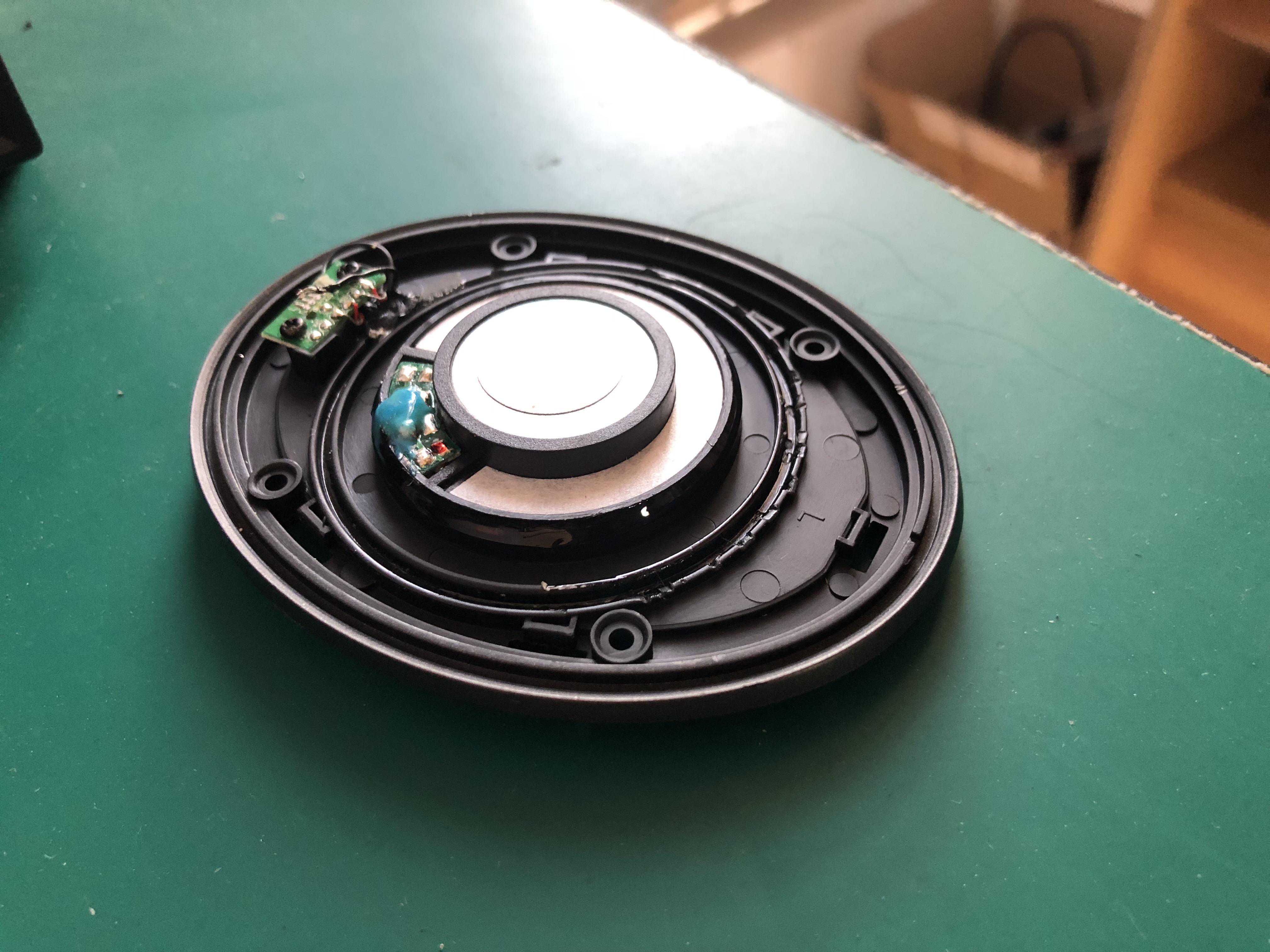 手头这台,听着听着,一边无声了,以为是接触不良,可是怎么带着蹦跶都没有反应,想想这种耳机,带蓝牙和降噪电路,不知道会不会电路故障,于是就拆开先测试喇叭看看