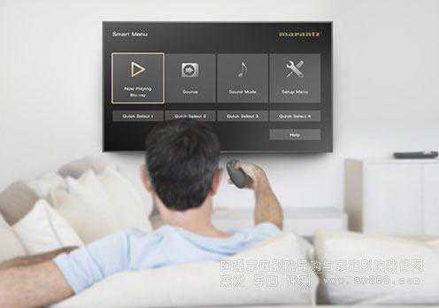 通过某些智能电视上的HDMICEC(消费者电子控制)功能,可以通过电视的遥控器控制SR5012。将接收机的“HDMI控制”设为ON,设置“智能菜单”接收机控制功能,通过电视机上的智能菜单主页屏幕,您能对源和环绕声模式选择、主设置菜单和智能选择配置预设进行直接访问。