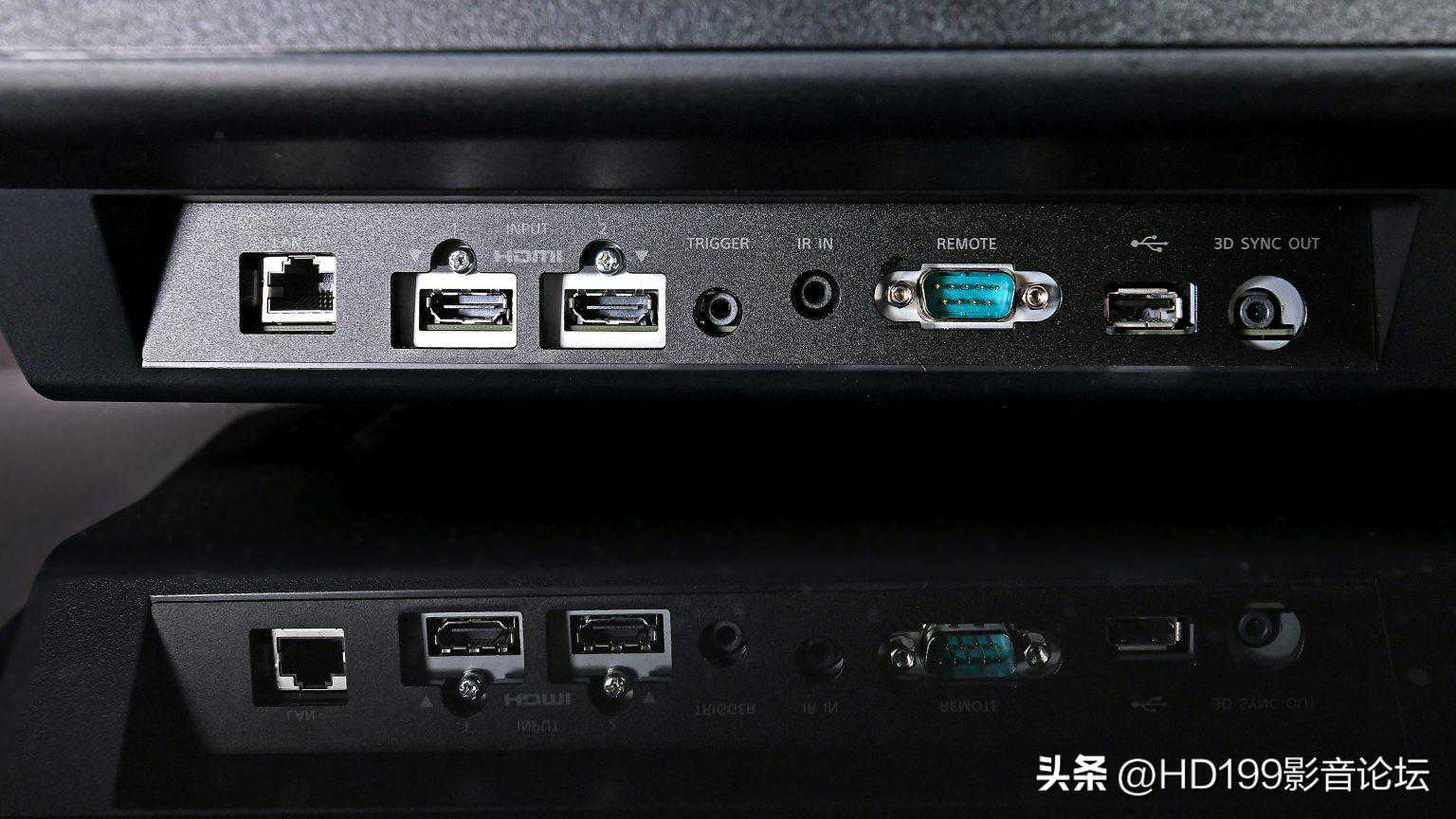 所有的AV接口现在都位于投影机的右侧。最右边是一个3D发射器的接口。