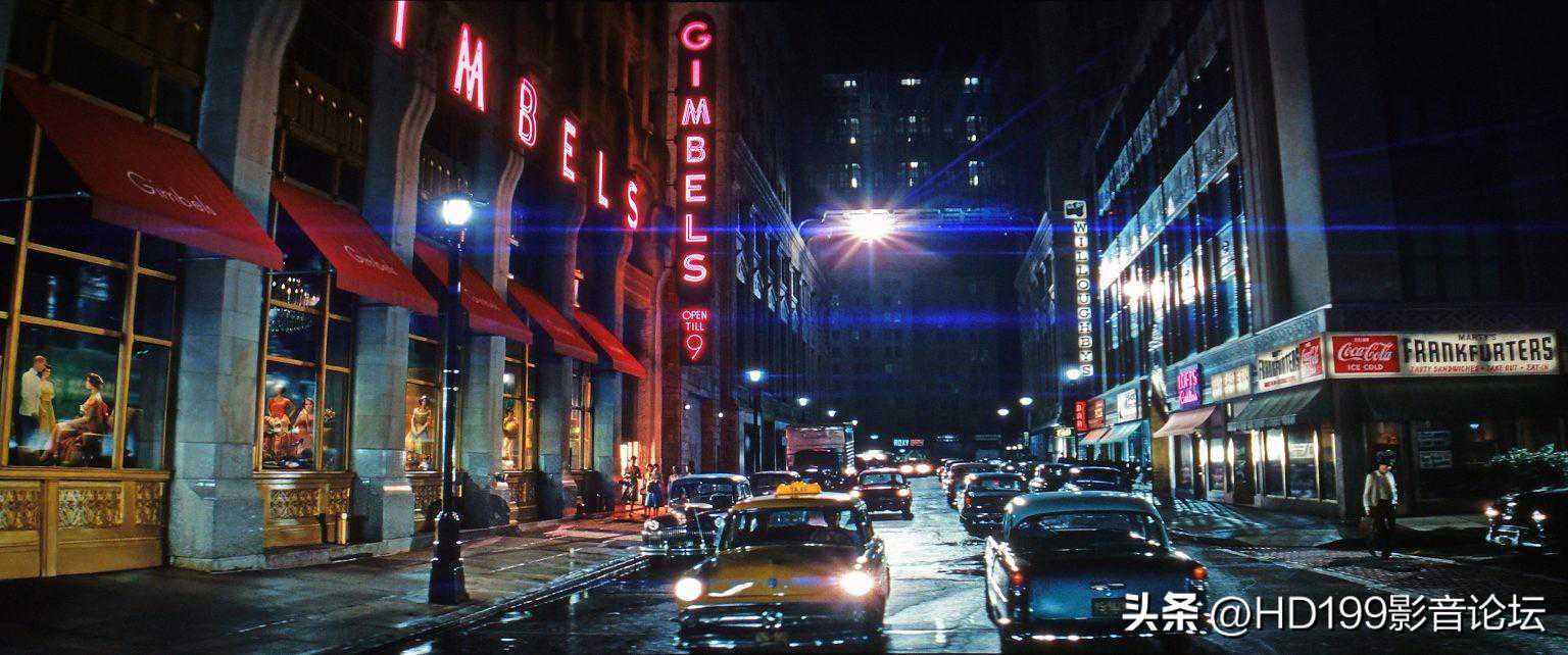 《西区故事》很好地展示了,斯蒂芬-斯皮尔伯格2022年拍摄的这部电影的色彩是如何的丰富多彩。从“FRANKFUTERS”可以清楚地看到商店橱窗和入口门。街道上,灯光并不闪耀,红色的霓虹灯“GIMBLES”字样闪耀着华丽的光芒。