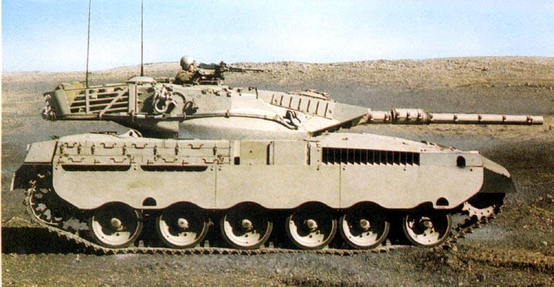 ▲梅卡瓦MK2(注意炮塔后部的铁链式屏蔽装甲)