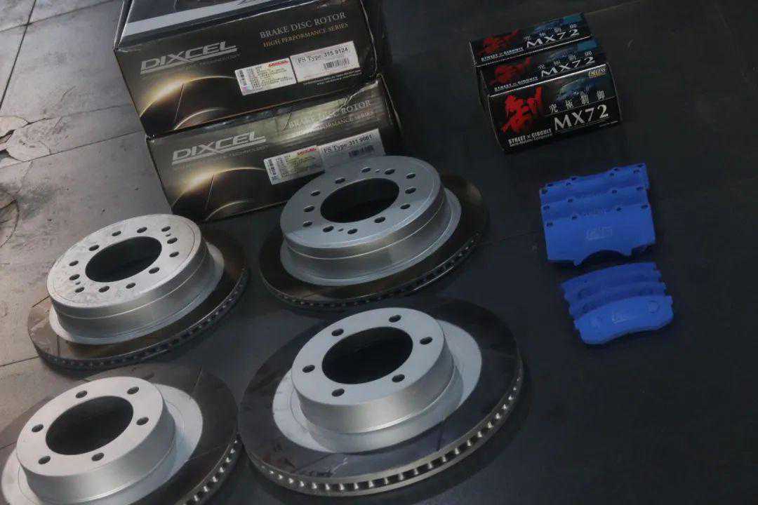 刹车卡顿,这个可以理解,丰田LC120刹车系统很鸡肋的,所以直接升级一套日本DIXCEL制动盘搭配究极制御MX72刹车皮做配套升级。