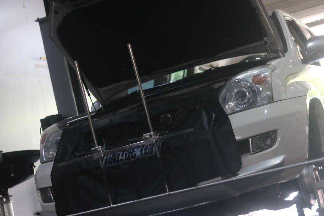 根据车主需求,底盘我们做了检查,胶套和一些部件都没问题,车主喜欢软绵绵的感觉,所以我们就不做硬派越野性能给车主调动了,不过换过制动盘皮,需要做一下四轮定位。
