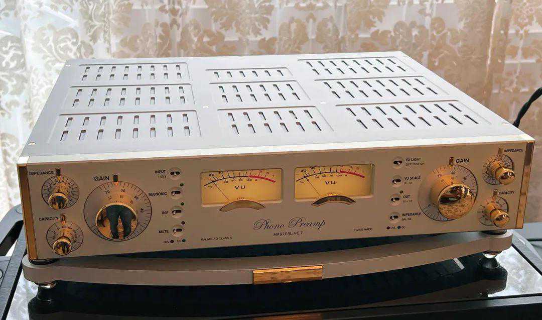 原厂说它们按照瑞士钟表工业联合会规定,内中零件必须60%以上在瑞士制造才能打上SwissMade字样,而Masterline7的机箱百分百在瑞士制造,这是它昂贵的真正原因。只靠外观当然不够,Masterline7最惊人的地方是规格,它的总谐波失真低至无法测得,讯噪比高达-144dBu(EIN22Hz-22kHz),RIAABalanced+/-0.05dB,串音大于120dB,频宽1.5Hz-150kHz,规格无敌,音质听起来也美得难以形容。
