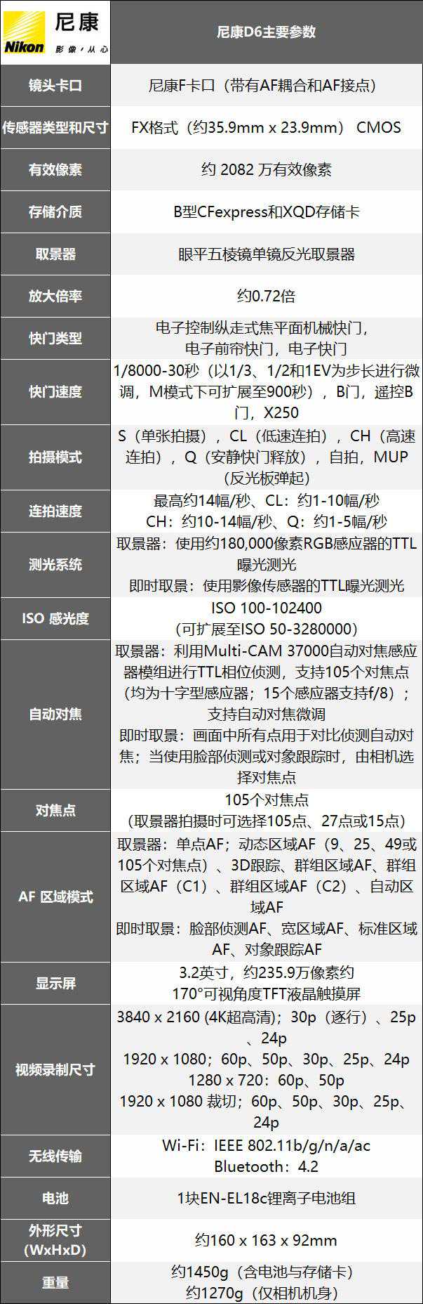 尼康D6主要参数: