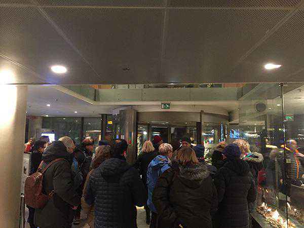 在特罗姆瑟一家酒店参加追极光旅行团的游客。