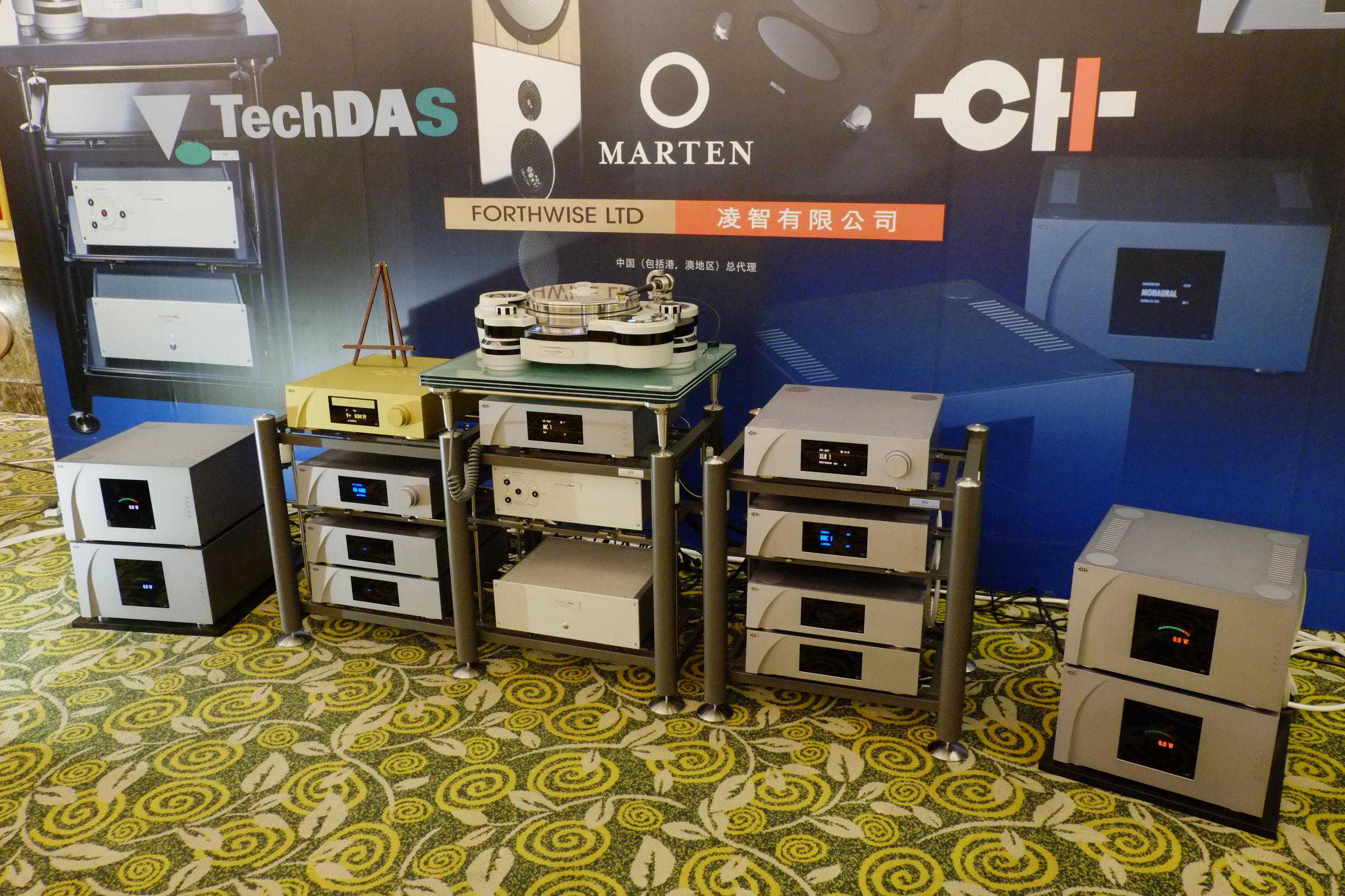 展会中的另一套价格超过300万的顶级Hi-系统,由架宗机架上的TechDAS空军一号唱盘、CH全套西装联合MARTENColtraneSupreme出声,不少观众直言此套便是展会最强组合。