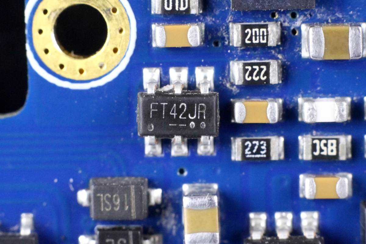 两颗NPO谐振电容特写和无线充电功率管特写,无线充电功率管采用SOT23封装。