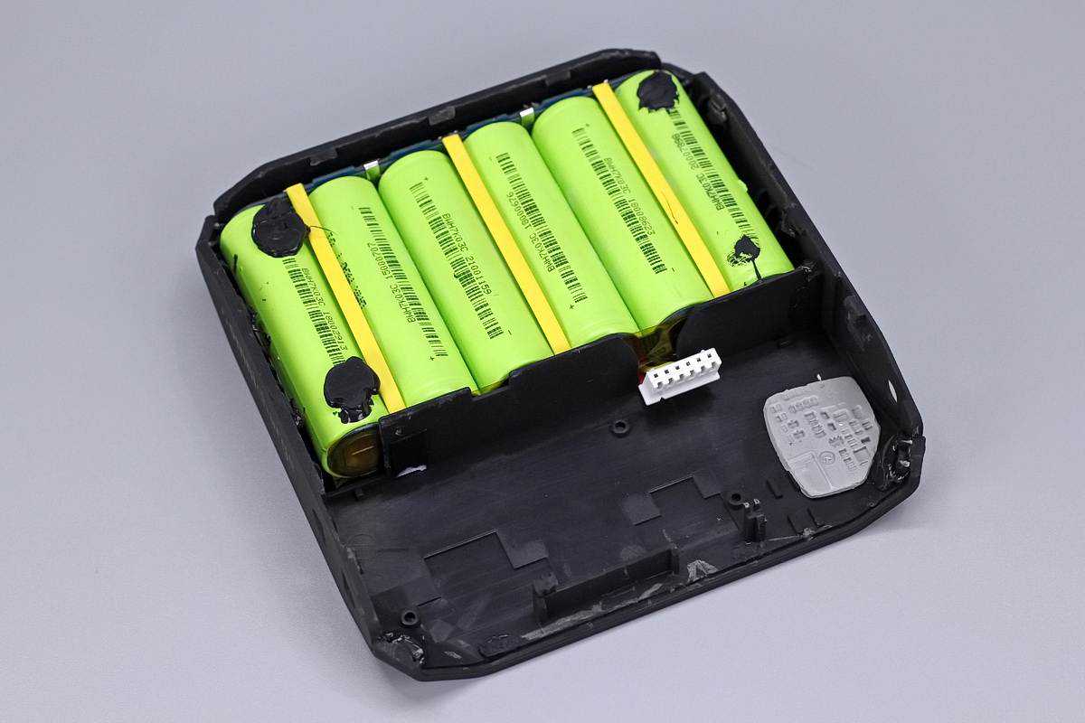 电芯一共6颗,两侧的电池打胶固定。