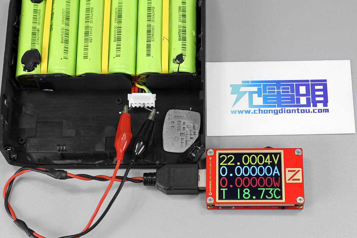 使用ChargerLABPOWER-ZKT002可以测得电池组空载电压达22V。