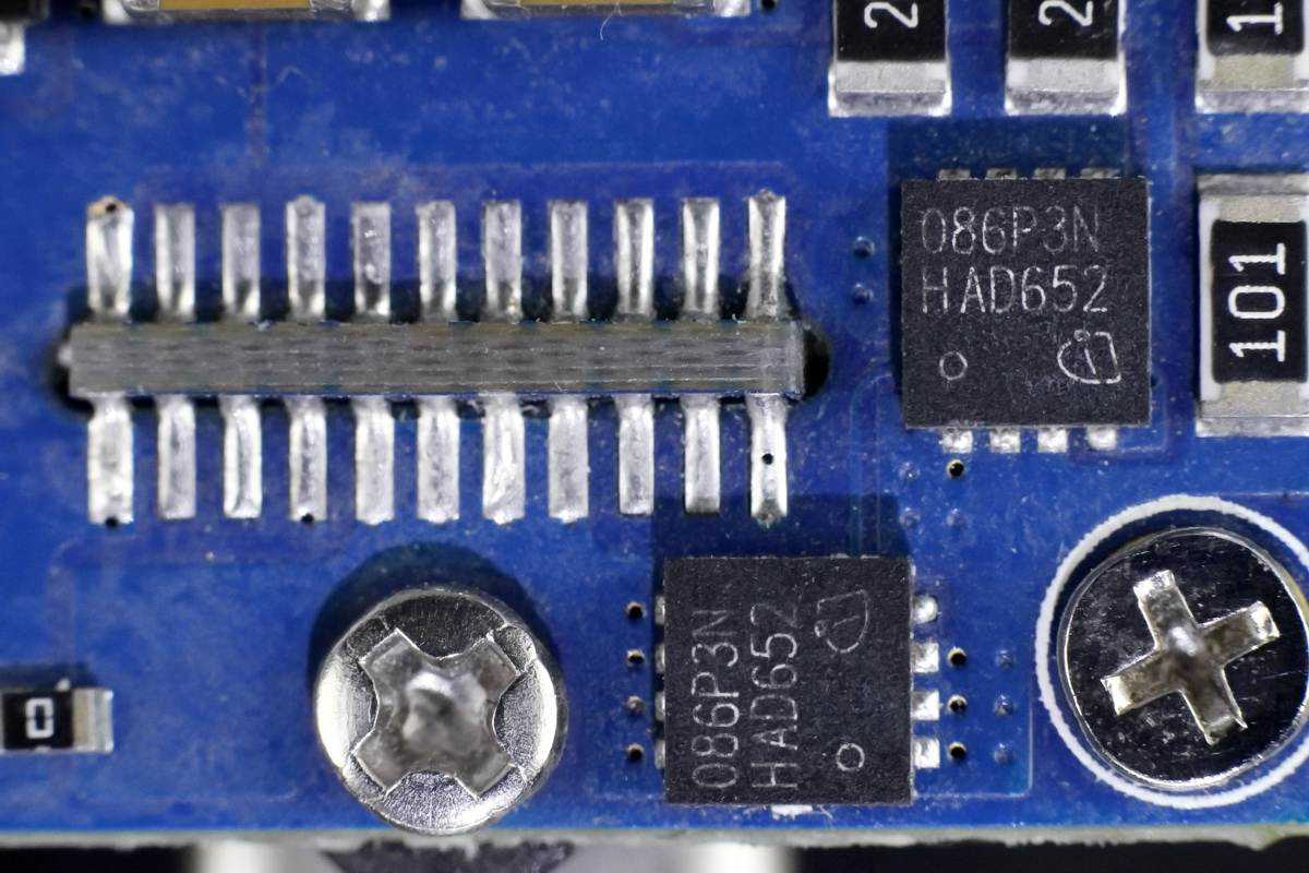 板子背面对应区域有DC和C口升降压电路,下方还有一排四颗MOS管。