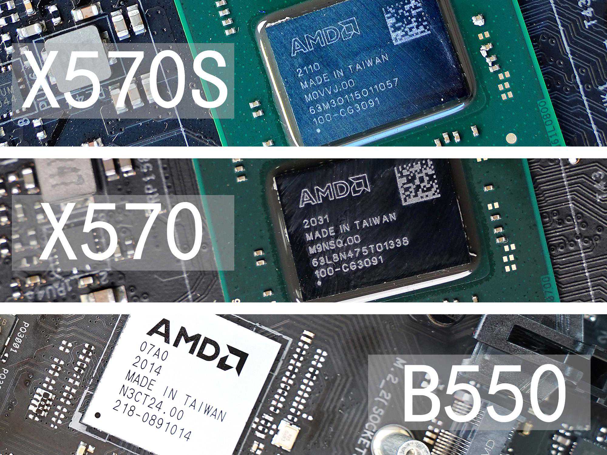X570S相比X570最大的变化就是取消芯片组的主动风扇散热,对比一下会发现X570S的芯片组大小以及外观基本和X570是一致的,所以应该还是AMD自己出品的优化14nm制程,而B550的芯片组为ASMedia出品8nm制程,明显是不一样的。