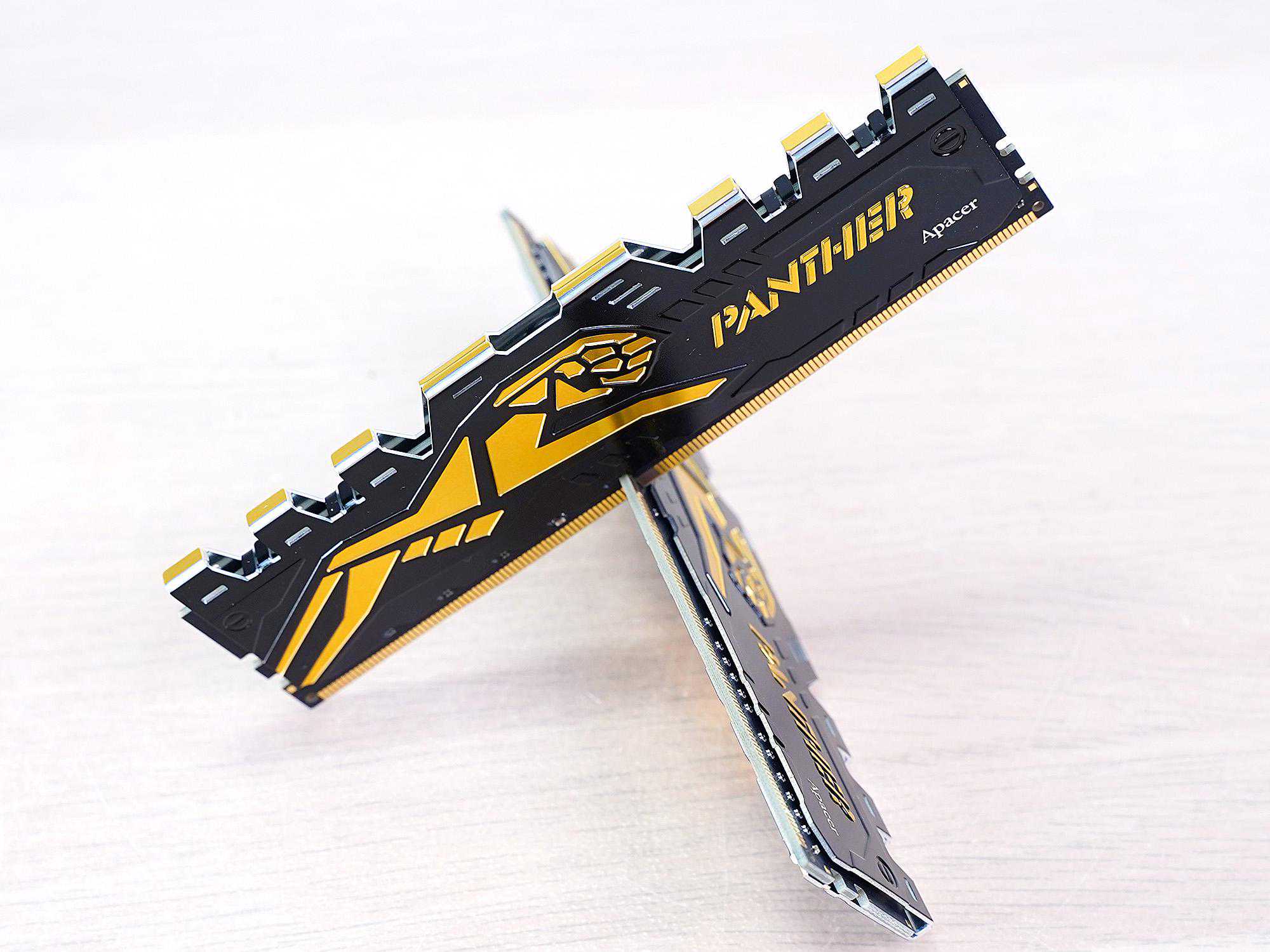 内存马甲上有精密冲压成型的金色小豹子和PANTHER的标识,另外还有Apacer的LOGO。