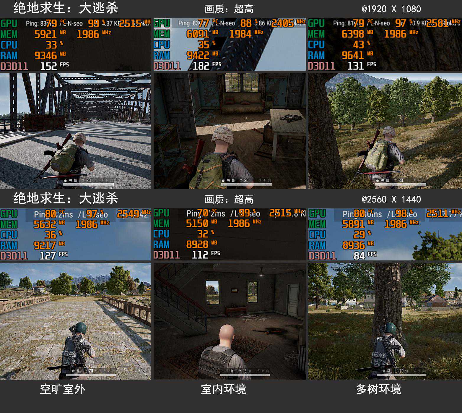 网络游戏方面,《绝地求生》超高画质(数据均来自实际游戏,不是训练场),1080p和2k分辨率都没问题,可以考虑搭配高刷新显示器达到最佳的效果。