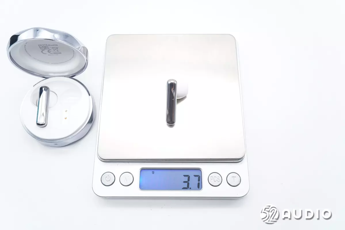 经我爱音频网实测,QCYFairyBuds真无线耳机整机重量约为44.7g。