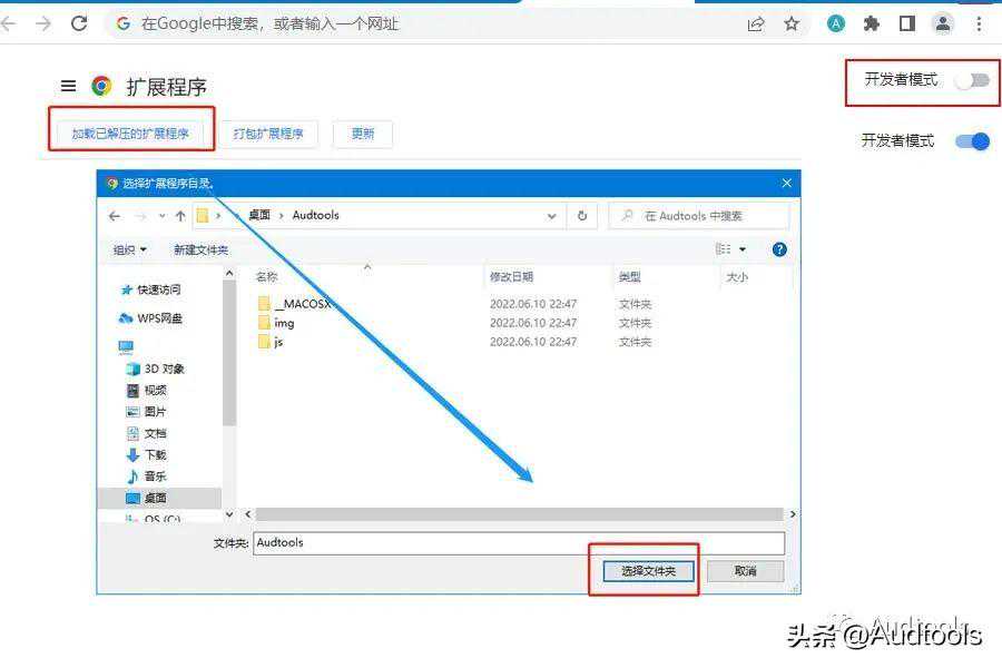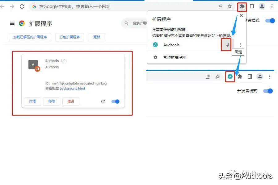 点亮后就可以在浏览器右上角看到“Audtools”插件图标了。