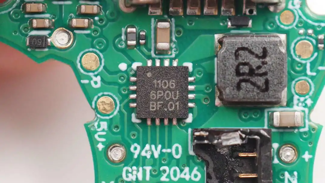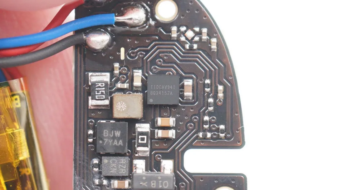 TI德州仪器BQ24157,支持升压输出的锂电池开关充电器。输入耐压20V,支持I2C控制,用于充电盒内置电池充电和升压为耳机充电。