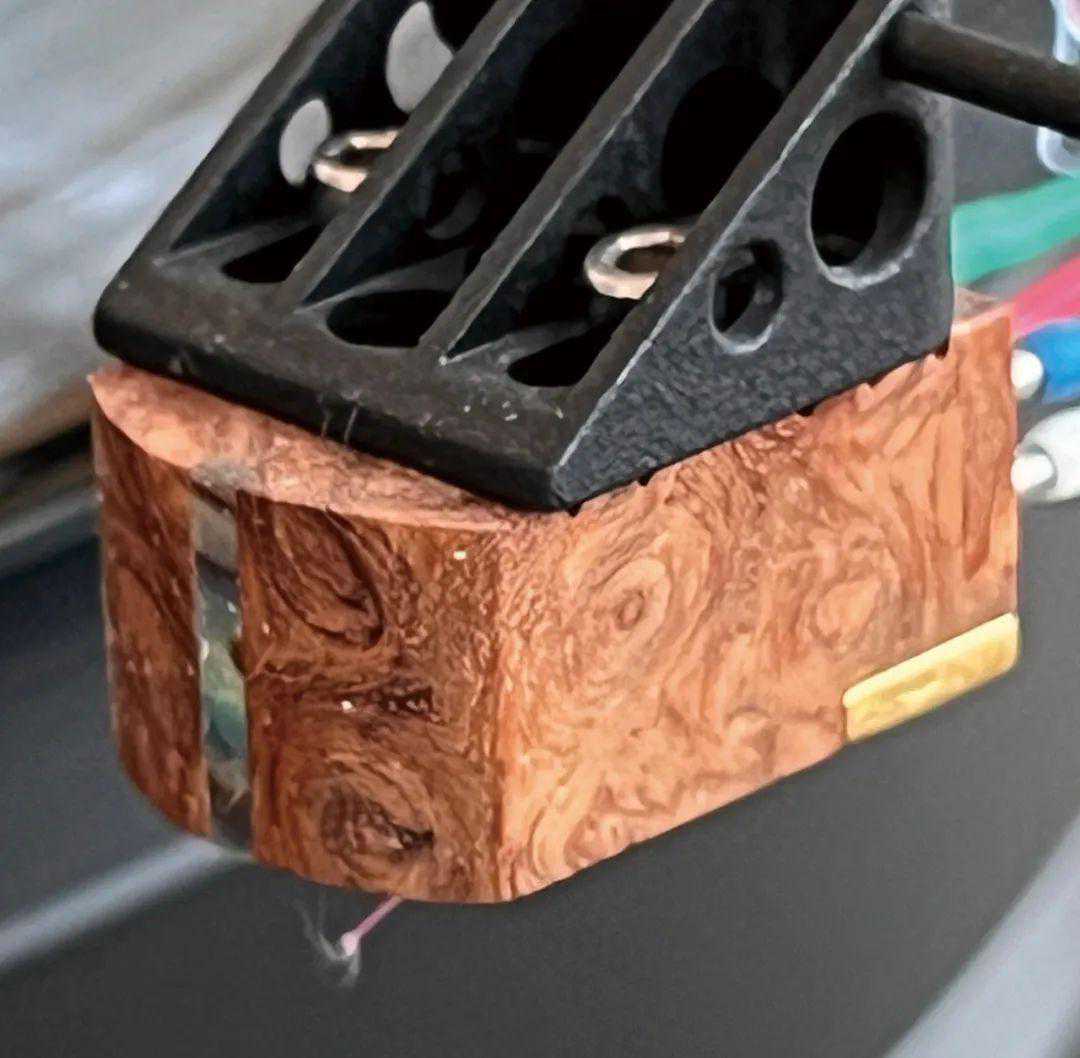 大家比较熟悉的FMAcoustics功放我们就不介绍了,对几件我感兴趣的产品多说二句。第一个瑞士隐世高手的珍奇之作BluelectricAltair4QD唱头,也就是外壳以漂亮实木制作的单声道唱头。这只唱头是FMAcoustics老板ManuelHuber的指定产品,外壳采用稀有的“蛇木”制作,这种木头密度极高,既硬又重,丢到水里会往下沉。同一系列唱头的外壳还包括桃花心木、黑檀、花梨木等高密度实木,以及密度稍软的棕榈木、梣木、七叶树瘤、胡桃树瘤等等。