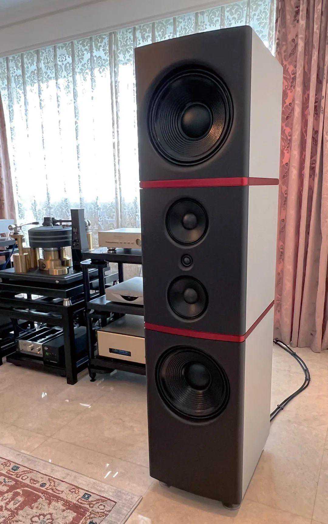 总之,结合FMAcoustics前后级推动Stenheim瑞士之声的ReferenceUltimeTwo二号音箱,声音非常轻松流畅有韵味。这对音箱的箱体与内部框架使用航空钛铝合金CNC制作,3分频5单元使用d'AppolitoArray排列,高音位于正中间,中音、低音单元等距离往上下对称排列,所有单元中心在同一直线。五只单元包括1英寸的高音、2只6.5英寸中音及2只12英寸低音,分置于六个独立的箱室(分频器有密闭式箱室),设计与用料也比照旗舰。经验中Stenheim音箱对功放的要求并不严苛,代理商主推的美国BAT功放即便是合并式型号,都能发出庞大又温暖的声音效果。二号音箱背板有RoomControl的调整设定,可以根据空间和声音喜好微调,快乐的“西湖肥妹”把结像比例调得很好。因为以古典音乐为主,魏总更注重音质与音色表现,还有整体的平衡度,我的评价很简单:好听!真实的好听!