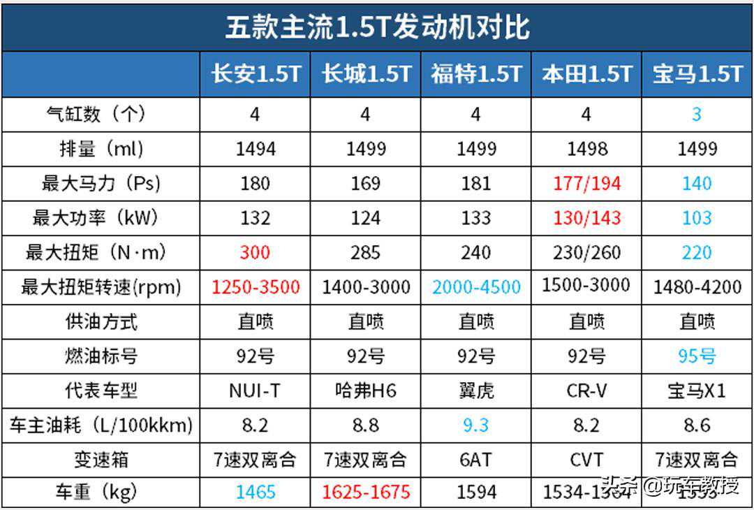 那这样的差距究竟有多大,我们不妨通过直观的动力参数和车主油耗,来看看长安、福特、长城、本田、宝马这5家车企各自的1.5T发动机分别什么水准。