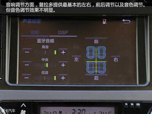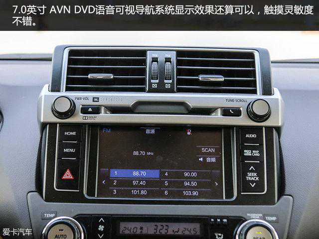 编辑点评:普拉多全车共内置了14个扬声器,品牌为JBL,整体是JBL的风格,超高音部分衰减的会比较厉害,没有很澎湃的那种感觉,适合听流行音乐,人声会差一点。对于这样一台越野机器,我觉得它的音响虽然稍有不足,但也足够够用。若你很在乎这方面,则可以通过专业的音响改装店进行升级。