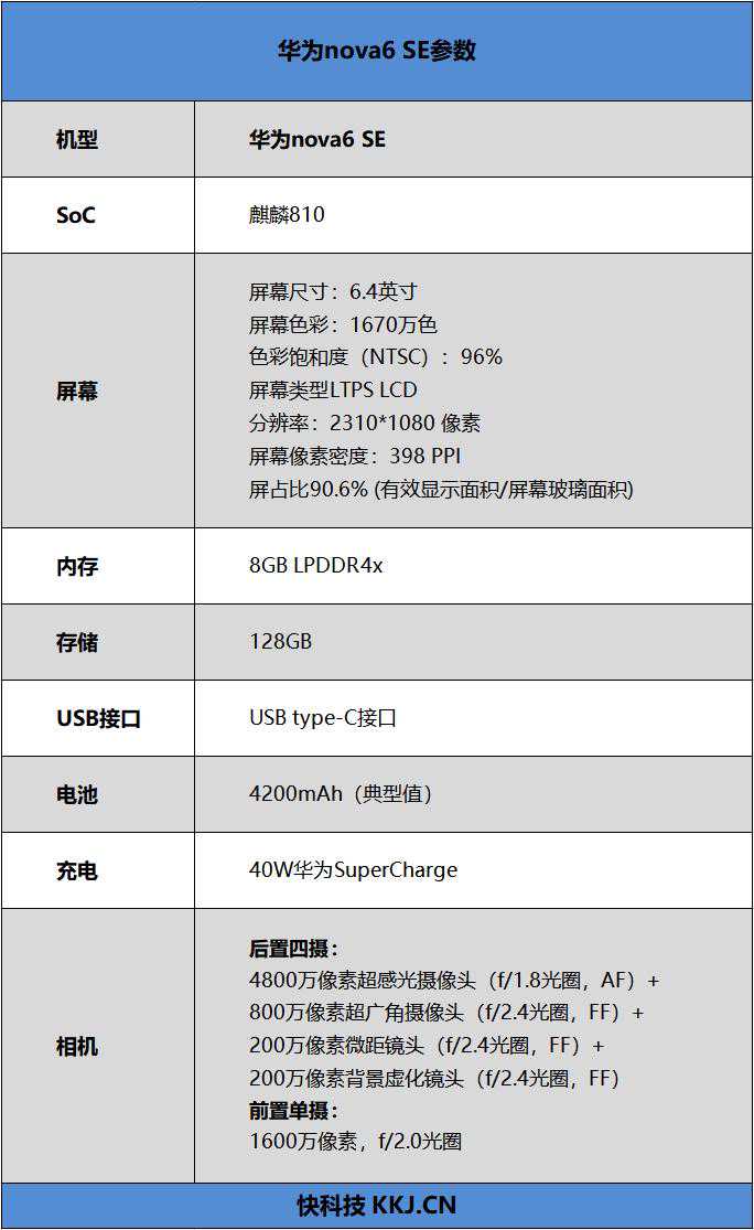 由于与旗舰同台亮相,华为nova6SE招引来的注意力势必被分走一些,可能大家对它的了解并不如另外两作全面,笔者就先简单介绍一下。
