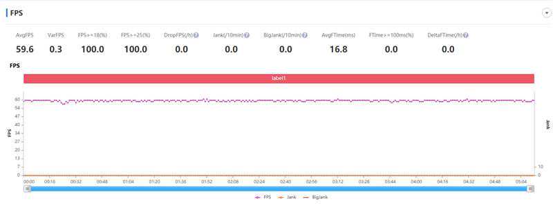 经过对华为nova6SE的游戏实测可以看到,《王者荣耀》的帧率基本稳定,平均帧率为59.6帧。