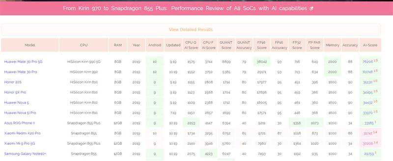 根据权威的AIBenchmark测试结果,麒麟810的分数仅次于麒麟990系列,值得一提的是华为和荣耀手机牢牢把持冠亚军,前十名当中的前六名都被搭载麒麟平台的荣耀和华为品牌机型牢牢占据,也是蔚为壮观。
