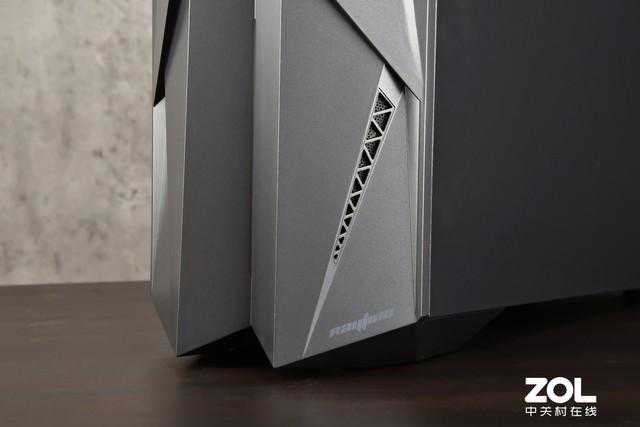 设计方面,雷霆世纪觉醒X5S的前面板下方两侧有对称鲨鱼鳃式进风口,并且内置了金属防尘网,充当散热风道进风口的同时,还能够在源头隔离灰尘,而且设计非常美观,与整体风格一致。此外机箱采用5°上扬倾角设计,通过冷热空气对流原理实现更佳的风道走向。雷霆世纪觉醒X5S的机箱设计不仅合理,而且巧妙。