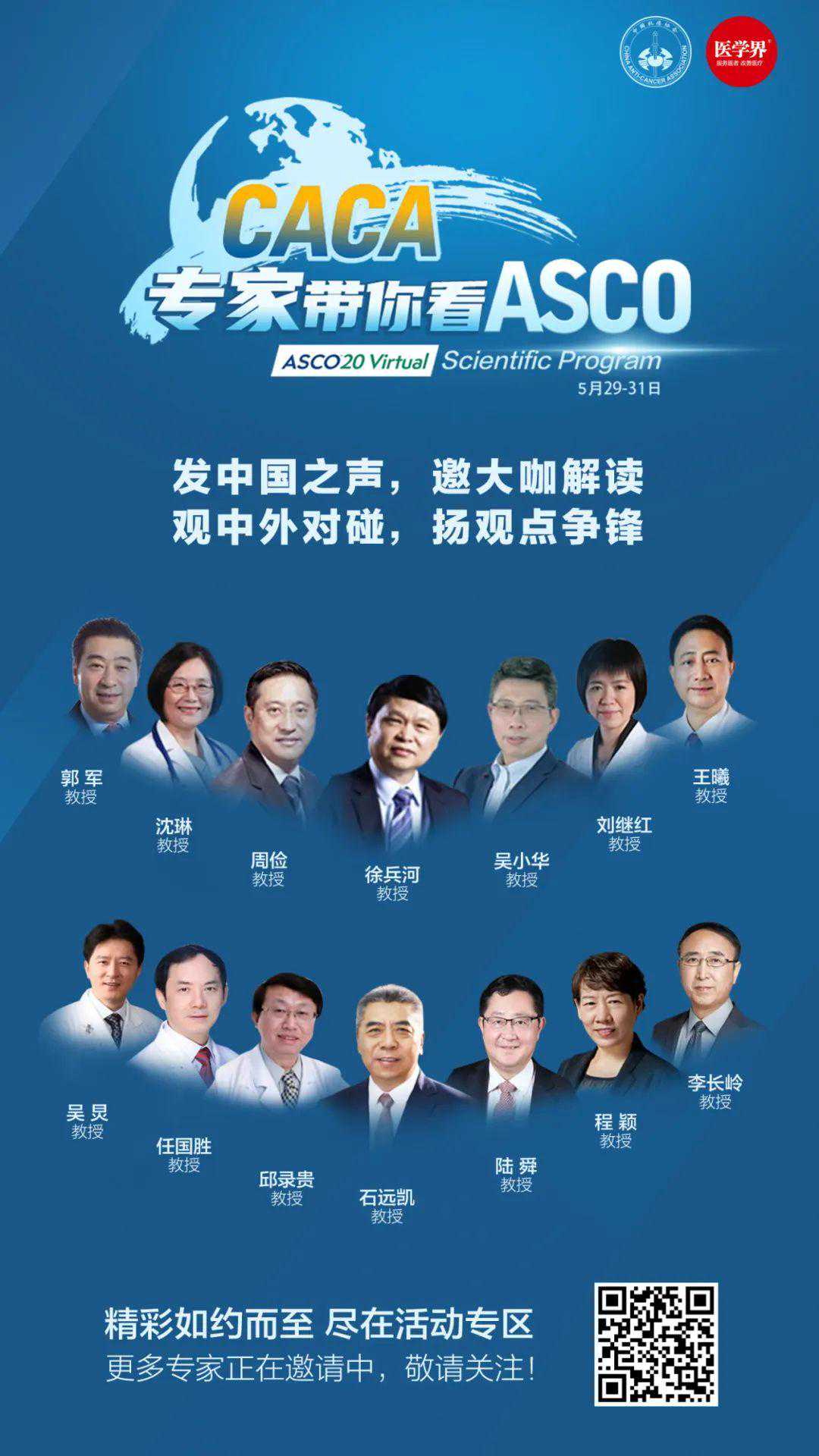 2020ASCO大会有哪些新进展?扫描二维码,让CACA专家带你看就对了!