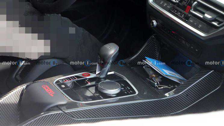 虽然新车的外观仍然覆盖着厚重的车衣,但海外车迷还是成功拍摄到了新车的内饰,我们能够注意到m4CSL进行了整车内部的大幅减重,其中不仅直接取消了传统的中央扶手箱,甚至连延伸中控台也更换了纯碳纤维材质,甚至连前方储物格的盖板也消失不见。