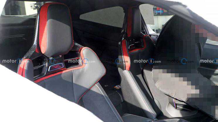 与此同时新车还将使用两把全新的碳纤维+皮革包裹的前排座椅,能够看出座椅造型不仅薄而且极具包裹性,背后镂空更是为四点式安全带所保留的镂空,而后排座椅疑似直接被取消。加上原本属于普通版M4的碳纤维装饰板和Alcantara+碳纤维材质方向盘,相信新车将相比普通版m4迎来大幅减重。