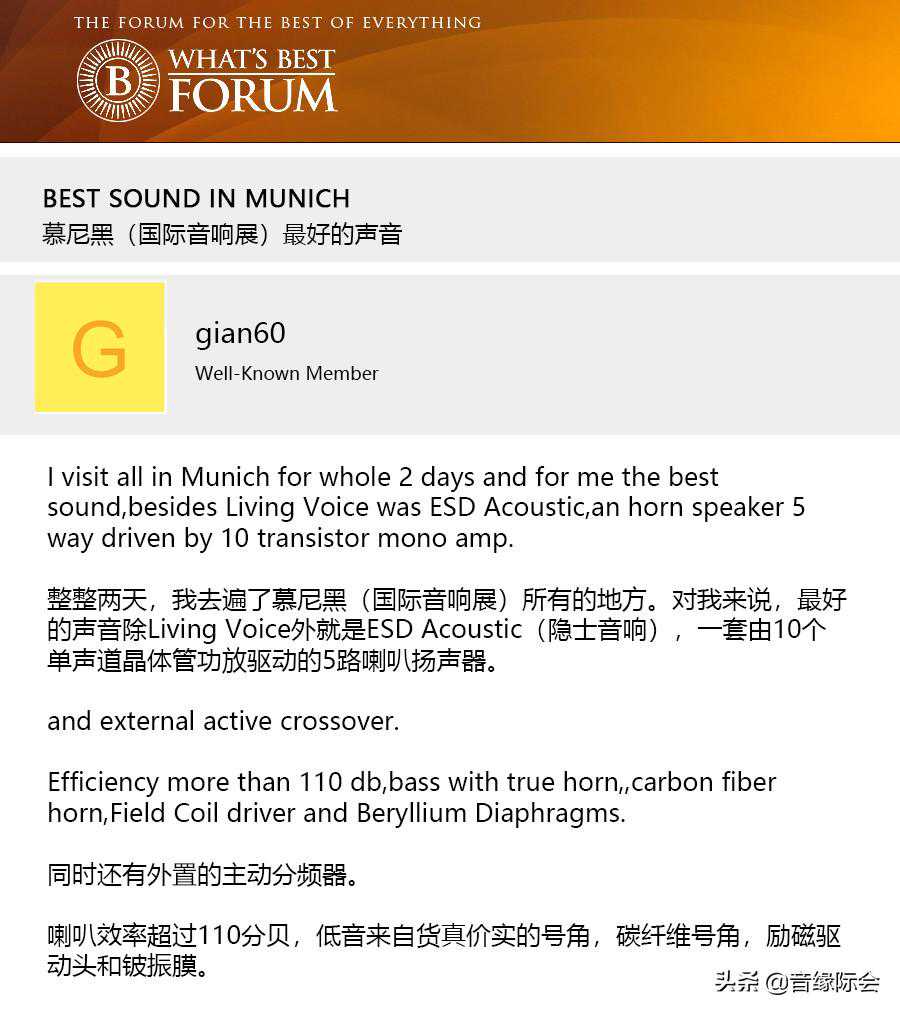 被海外知名的发烧友称此次慕尼黑展会的最好声音。