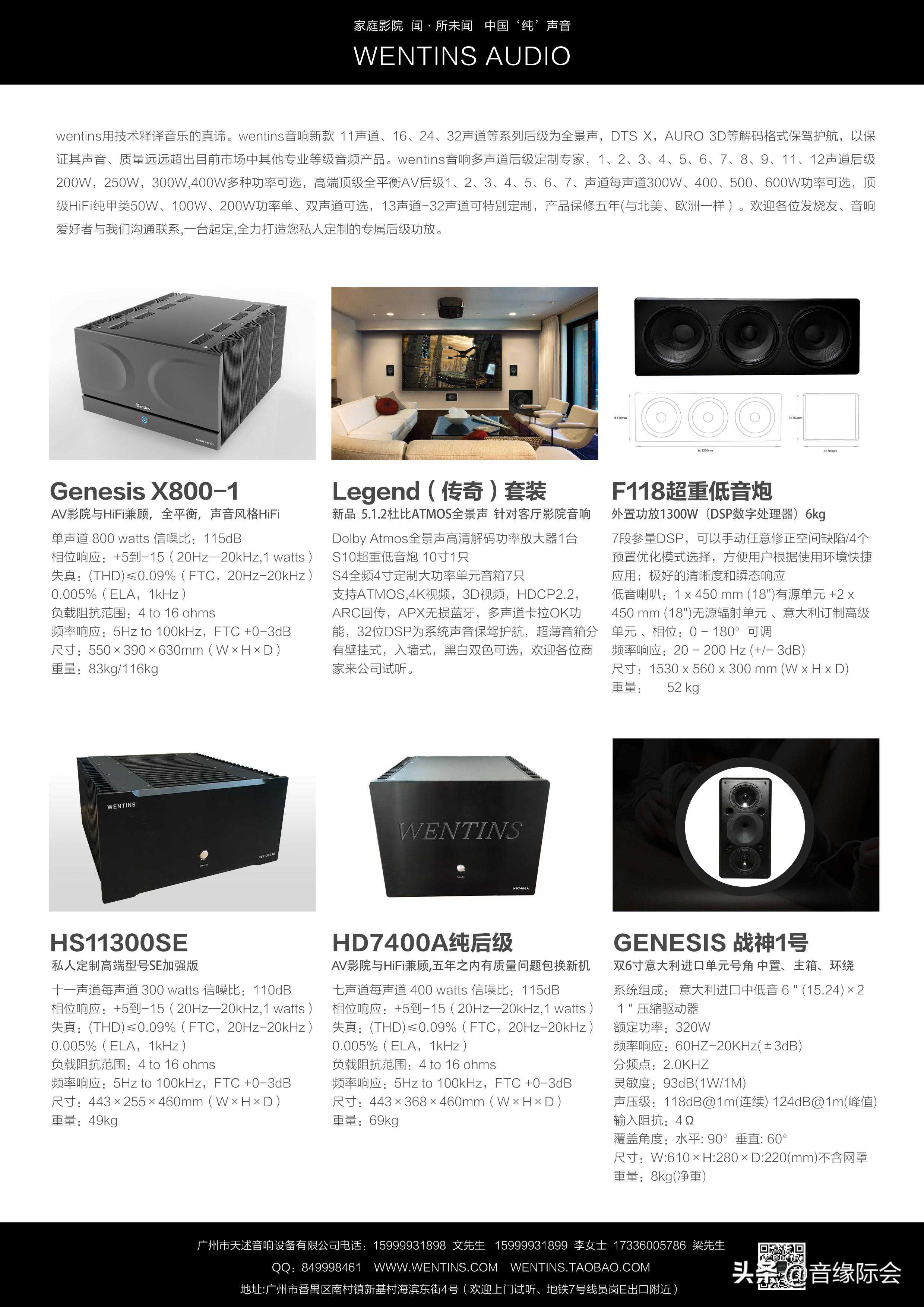 wentins用技术释译音乐的真谛。wentins音响新款11声道、16、24、32声道等系列后级为全景声,DTSX,AURO3D等解码格式保驾护航,以保证其声音、质量远远超出目前市场中其他专业等级音频产品。wentins音响多声道后级定制专家,1、2、3、4、5、6、7、8、9、11、12声道后级200W,250W,300W,400W多种功率可选,高端顶级全平衡AV后级1、2、3、4、5、6、7、声道每声道300W、400、500、600W功率可选,顶级HiFi纯甲类50W、100W、200W功率单、双声道可选,13声道-32声道可特別定制,产品保修五年(与北美、欧洲一样)部分产品五年之内有质量问题包换新机。欢迎各位发烧友、音响爱好者与我们沟通联系,一台起定,全力打造您私人定制的专属后级功放。