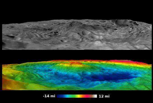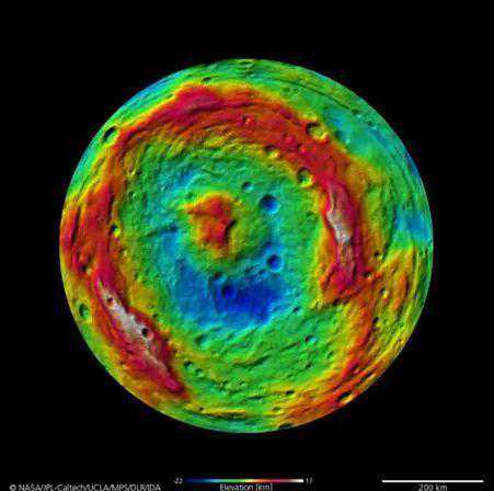 位于盆地中央区域的中央峰,高于坑底可达21公里,因此也成为太阳系最高山之一。