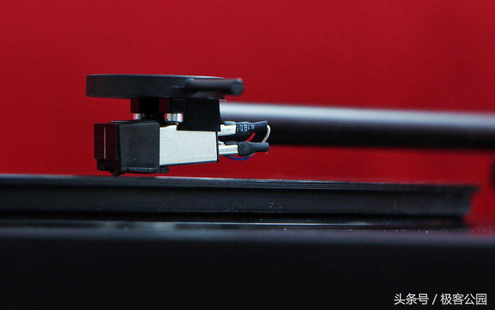 唱头是黑胶唱机中最为核心的部件之一,HX500使用的是MM(动磁)唱头,它通过唱针接收唱片沟痕里的音乐信号推动小磁铁运动,产生磁力线切割作用进而输出电平。