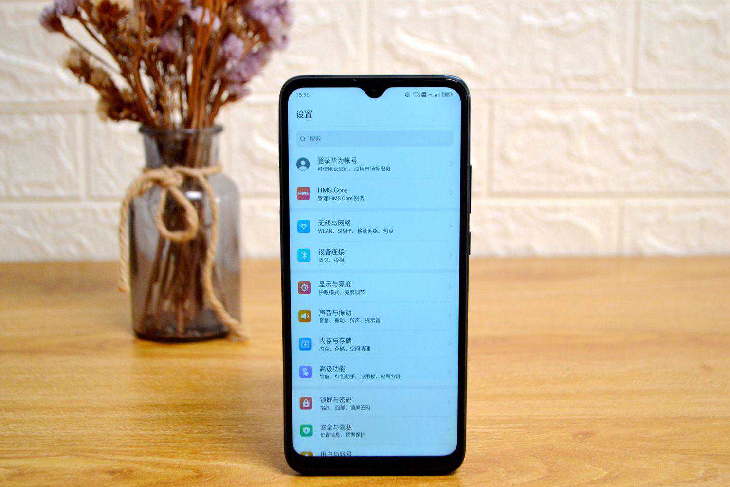 屏幕方面,正面采用了一块6.53英寸的LCD的屏幕,全面屏采用的是水滴屏的设计方案,分辨率为720P。底边黑边相对旗舰机来说还是蛮宽的,屏占比一般,符合中端机的水准。