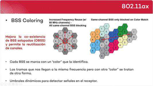 而【BSSColoring】就是为每一个AP“着色”,当路由器或设备在发送数据前侦听到信道已被占用时,会首先检查该“占用”的BSSColor,确定是否是同一AP的网络,如果不是,则不用避让,从而允许多个AP在同一信道上运行,并智能管理多用户同时并行传输,以此实现更高效的数据处理。