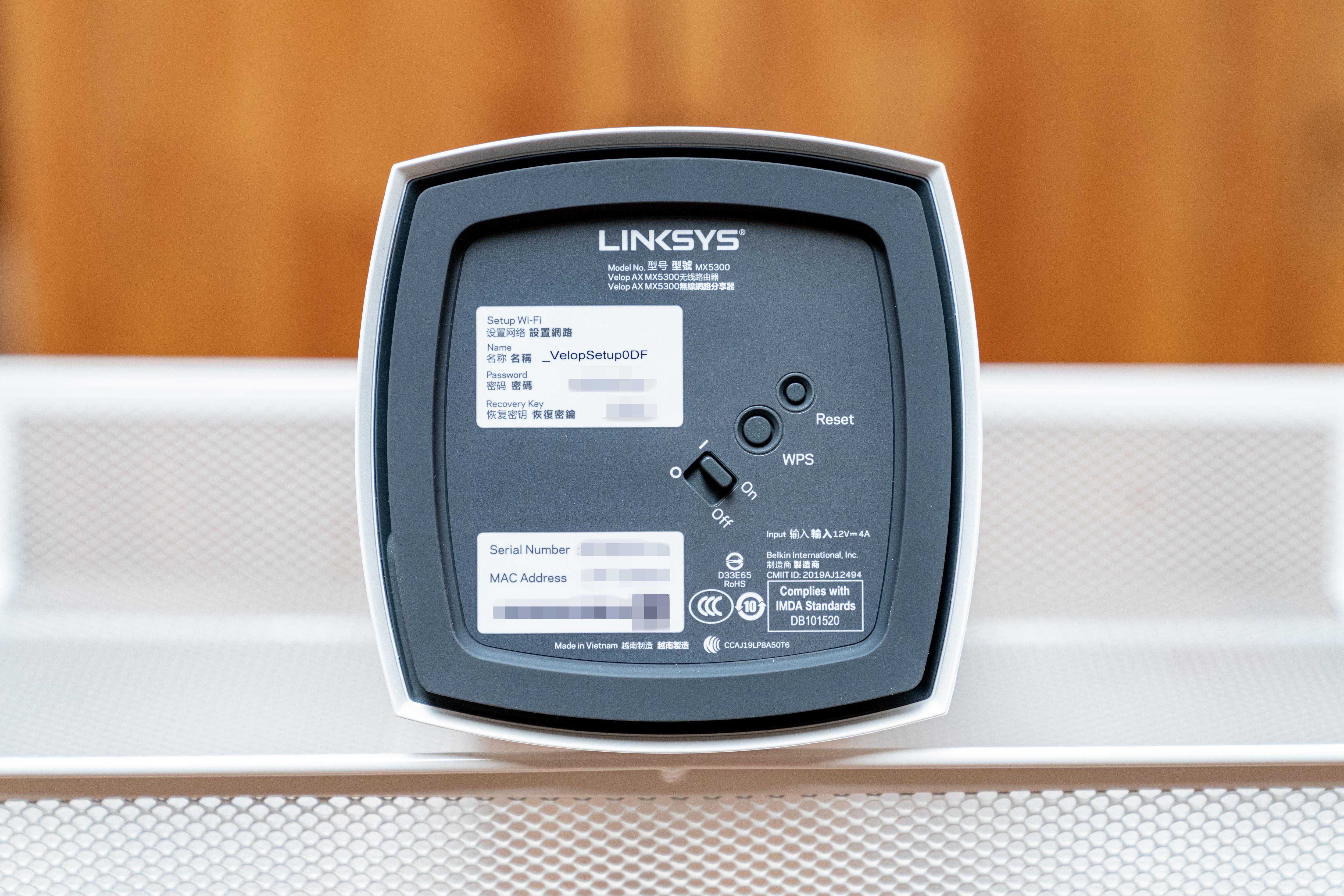 路由器的底部除了标识有产品的序列号、初始网络ID/密码、管理员密码外,还有一个电源开关,WPS一键联网以及Reset键。连按5下reset键就能自动设置DHCP模式,即可完成多台节点自动组网,这样就是MX10600的免APP免网页快速组网设定和安装方法,相比于传统的配对方式确实要便捷了许多。