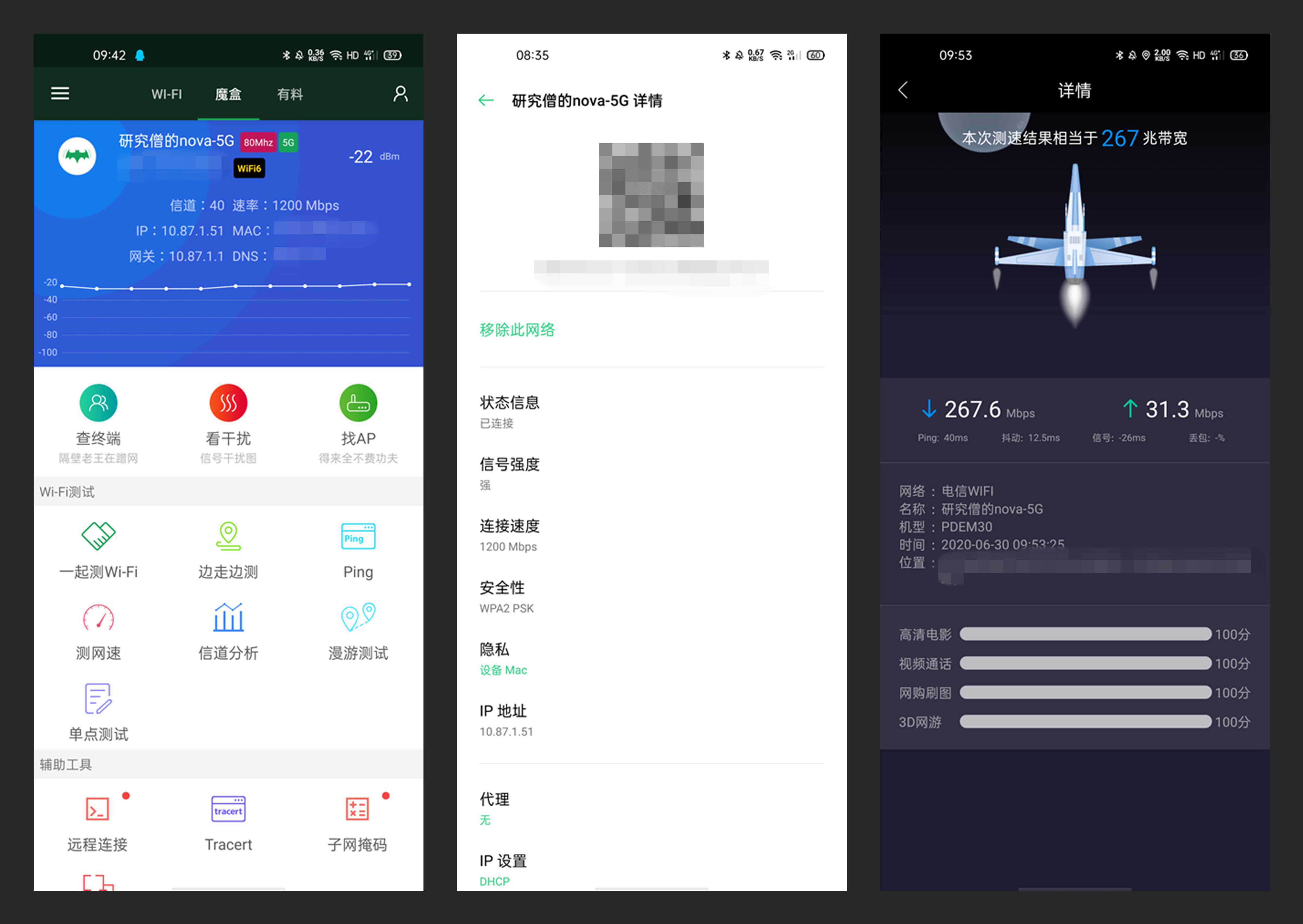 而搭载了intelAX200WiFi6的笔记本电脑也成功握手(速度为1.2Gbps),使用有线千兆端口把MX5300连接电脑时,这个速率只有1.0Gbps,无线带宽比有线带宽还高真是一种奇特的体验。我家里面的宽带只有200Mbps,就没法做对比了。如果是企业千兆级网络环境下,那提升一定很酸爽了。