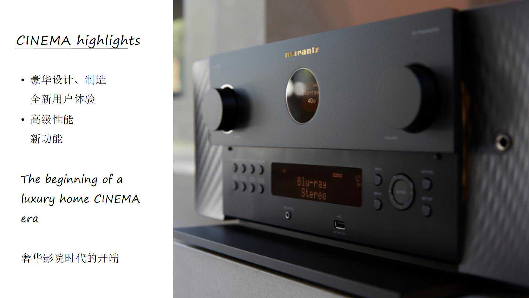 马兰士不仅仅是给Cinema系列全新的外观,内在的显示部分也完全重做了,终于是高清界面了。
