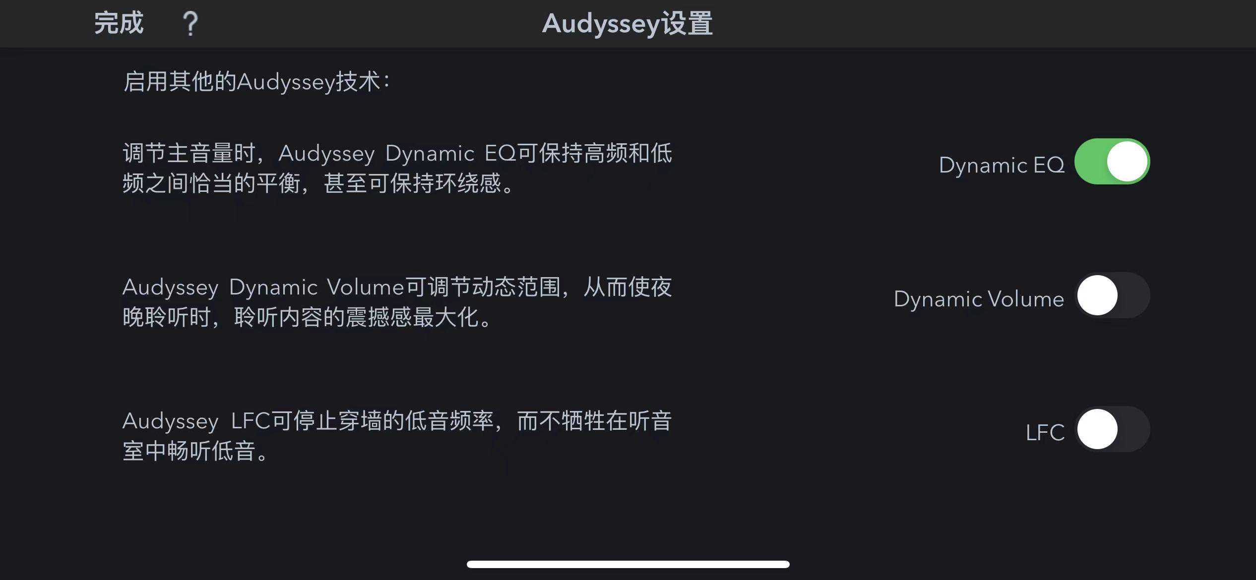 Cinema50的手机Audyssey设置,最下面就是LFC