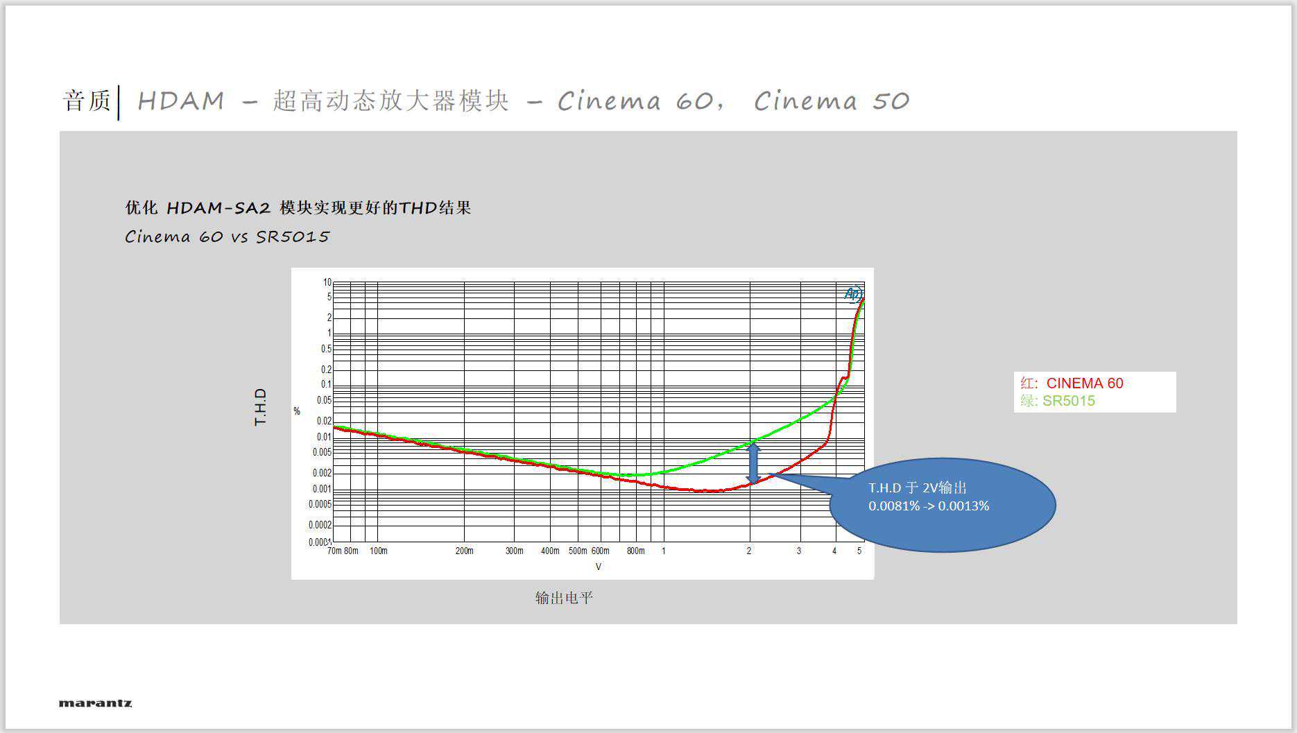 Cinema系列和相对于SR系列的核心区别还在放大电路上的改进,也就是马兰士核心HDAM放大模块的进化。