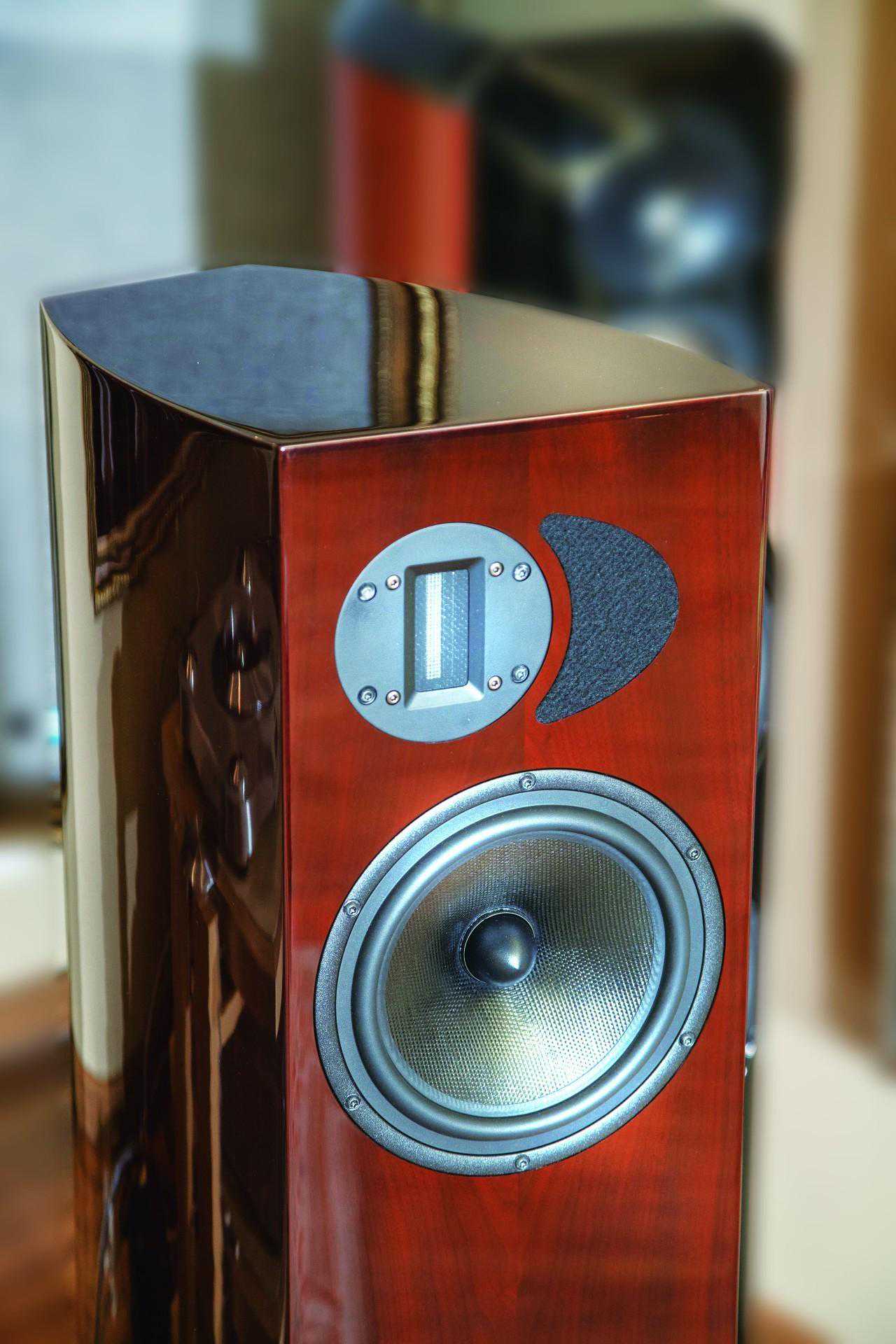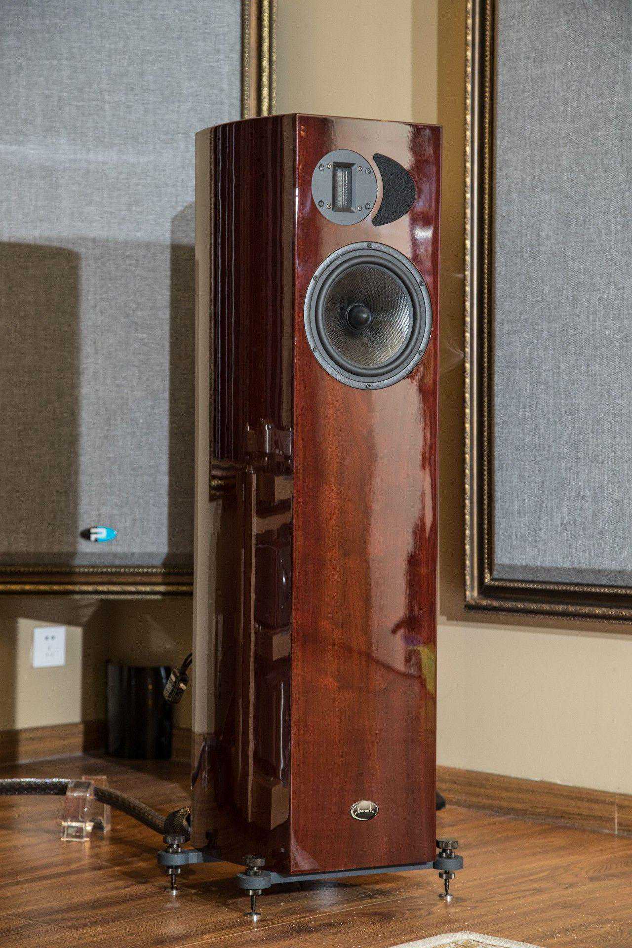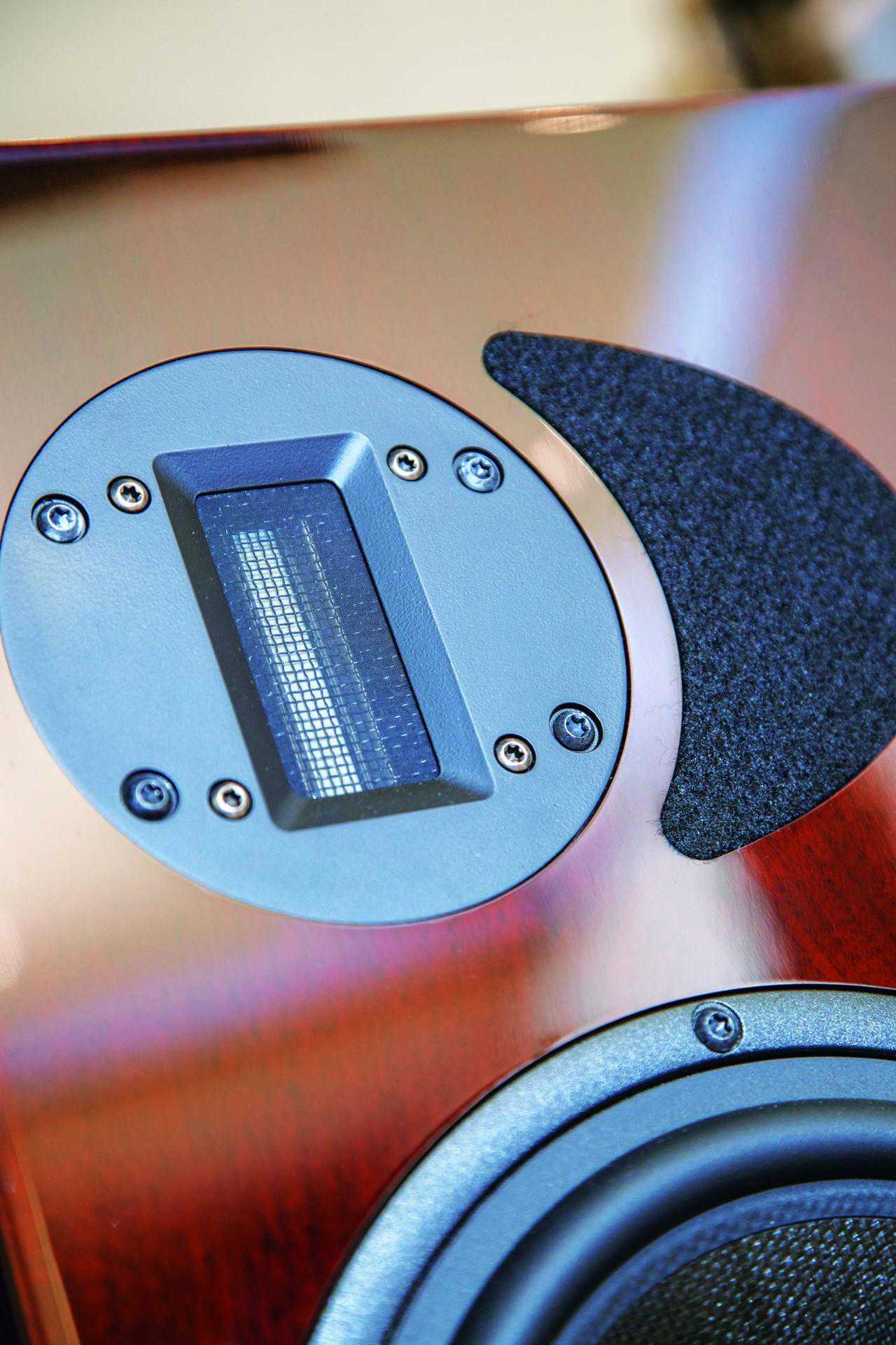 有好的箱体想出好声音当然还得靠素质足够高的喇叭单元,这方面Apertura依然一点也不含糊,他家几乎全线产品都坚持采用铝带高音和编织振膜锥盘中低音单元的组合,经验告诉我们,这是一个追求快速响应的速度感、高分析力的倾向。具体而言,Apertura会根据不同型号需求采用不同尺寸的铝带高音,比如旗舰Enigma幻想采用5吋长度的铝带高音,Edena则采用3吋的产品。铝带高音的好处很多,相比较传统的球顶喇叭而言,振膜的面积更大而质量更轻,而且整块振膜都处在有效磁场内,令高频延伸性能、细节呈示能力,失真度等方面都要出色不少。