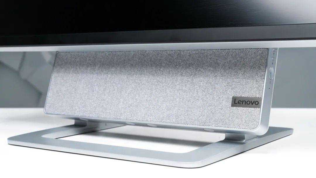联想YOGA27是该品牌旗下的旗舰级一体机,外观设计比较独特,27寸窄边框,底部支架集成了音响,表面采用了布艺外观,整体比较简洁。