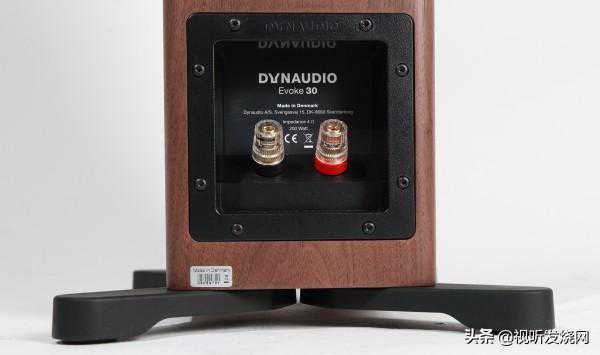 外观设计还是延续Dynaudio传统的造型,但融入了近年Dynaudio的设计元素。Evoke30前宽厚窄的设计,让两侧板虽不像NewContour和NewConfidence那样是圆弧形的,却仍有助于减少内部驻波。低音反射孔位于背后,原厂还附有海绵塞,用家可依据离背墙距离及个人的声音偏好来选择塞或不塞住反射孔。底部有延伸的底板,底板下方可装上脚钉,以减少振动传导干扰声音质量,亦可调整音箱水平。用家也可不装脚钉,底板有橡皮垫,直接落地也成。声音方面,加上脚钉,声音则会更干净利落一些。
