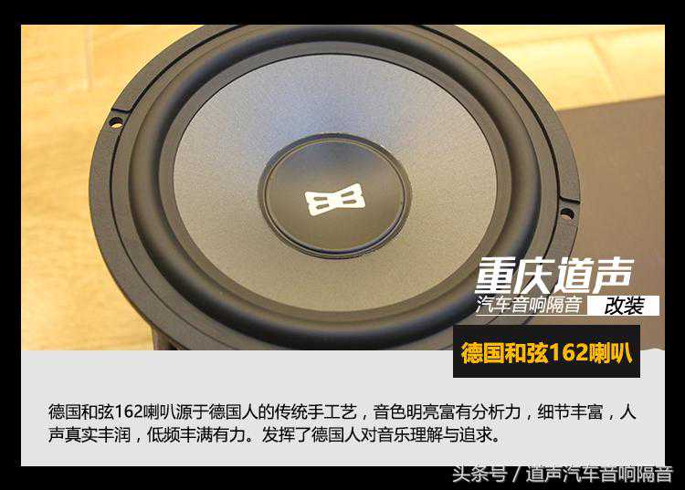 本次改装将之前改装JBL喇叭更换到了后声场,并在前声场加装了德国和弦162套装喇叭,德国和弦注重音乐的还原性,讲究原滋原味,纯粹的声音。