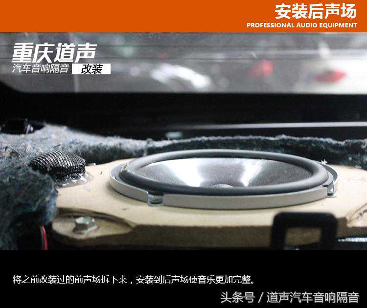 将之前改装过的前声场JBLGTO608C套装喇叭拆下来,安装到后声场使音乐更加完整。