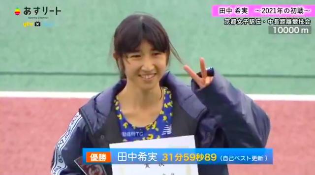 第二天,日本京都举行的一场中长跑竞技赛上,1999年出生的日本女子选手田中希实,也在1万米项目里,跑出了自己的个人最佳,用时31分59秒89。