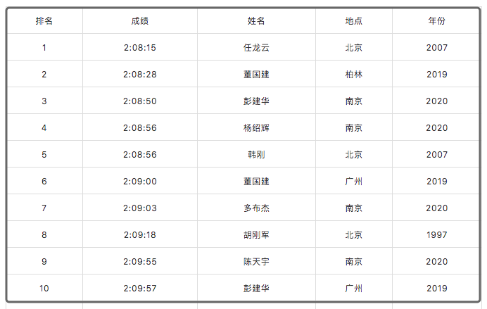 其中,彭建华、杨绍辉、多布杰、陈天宇四人在去年跑出的个人PB,还闯进了历史前十。